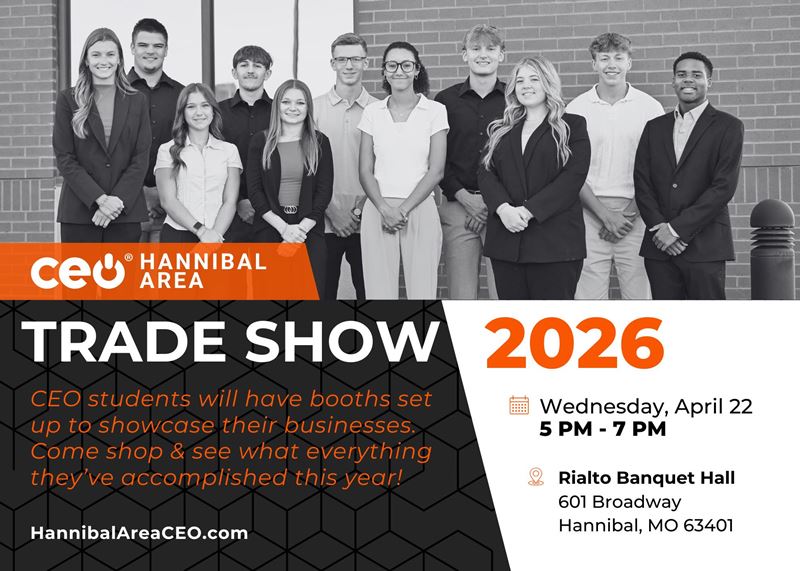 Hannibal Area CEO Class of 2026 is comprised of 9 students. Students are selected from 3 different surrounding schools.